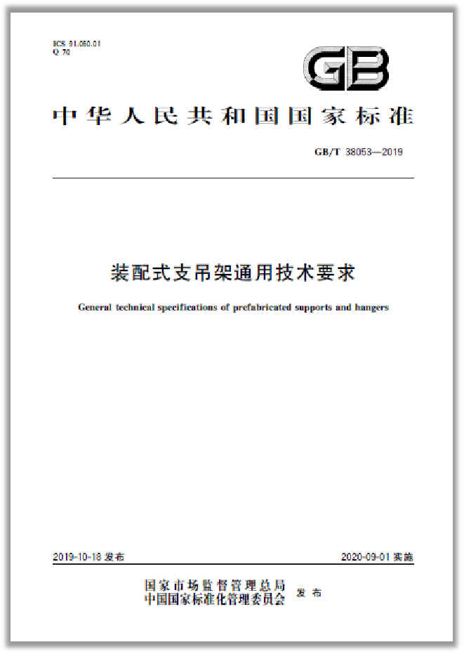 由蘇州華固參與起草的《裝配式支吊架通用技術要求》GB/T 38053-2019于2019.10.18日正式發(fā)布。